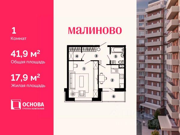 Продается 1-комн. кв-ра площадью 40,8 кв.м на 2 этаже 12 этажного монолитно-кирпичного дома в ЖК "Малиново". АО ГК ОСНОВА является крупным застройщиком Москвы и Московской области. В девелоперском портфеле Компании на разных стадиях реализации сегодня находятся 20 жилых проектов в столичном регионе площадью порядка 2 млн м2, а также один реализованный проект в Чехии. Проект ЖК "Малиново" один из 20 проектов АО ГК ОСНОВА, он представляет собой 12-ти этажный кирпично-монолитный жилой комплекс, который находится в одном из наиболее экологически чистых районов Подмосковья - Звенигороде. Комплекс расположен в микрорайоне Восточный, в 5 минутах до ЦКАД и в 42 км от МКАД. Сердце города находится буквально в пятнадцати минутах ходьбы от месторасположения ЖК. ЖК "Малиново" располагается в районе с развитой инфраструктурой и хорошей транспортной доступностью. Поблизости находятся детские сады, школы, медицинские учреждения, торговые комплексы, магазины, культурный центр, спорткомплекс, бассейн и памятник природы - Мозжинский овраг. Недалеко от города - горнолыжные трассы, спуски для снегокатов. В 7 минутах ходьбы от ЖК строится новая школа, ввод в эксплуатацию 2024 год. Приобретая квартиру в ЖК "Малиново" вы обретаете комфортный стиль жизни в центральной части города. Становитесь счастливым обладателем квартиры с видом на Москву-реку, а также с лоджией с панорамными окнами. Звоните и получите подробную консультацию, специалисты отдела продаж помогут выбрать наиболее подходящий вариант! Дистанционное оформление ипотеки, рассрочка и другие варианты покупки для вашего удобства.*