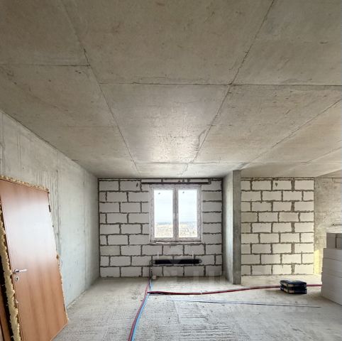 Квартира продается без отделки в бетоне. Расположена на 2 этаже 14-этажного дома, высота потолков — 2,75 метра. Планировка — распашонка: окна выходят на запад и на восток. Из окон открывается вид как на улицу, так и во двор.