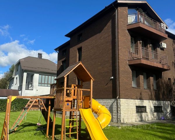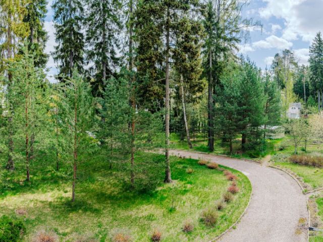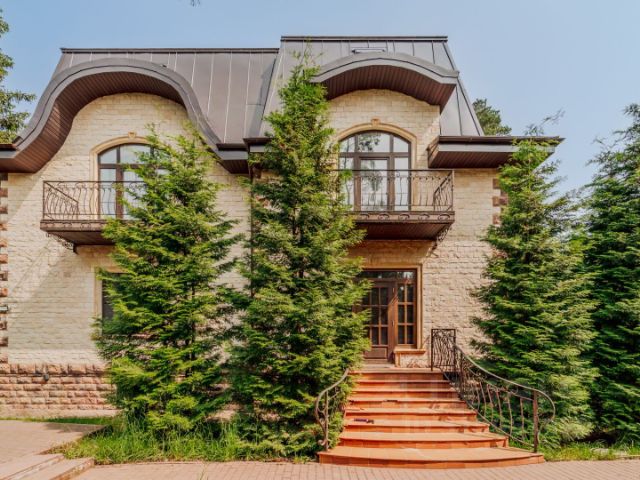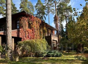 На участке с вековыми корабельными соснами и эксклюзивным ландшафтным дизайном расположен основной дом с гаражом, гостевой дом и отдельно стоящий СПА- комплекс. Респектабельное окружение, тихое место. Дом построен из кирпича в архитектурном стиле Ф. Л. Райта, концептуальными особенностями которого являются - приземистость и горизонтальная направленность линий, благодаря которым ощущается единство и гармония с природой. Планировки дома функциональные и комфортные для жизни. Ощущение пространства дарит просторная гостиная с камином и выходом на открытую террасу, предназначенную для семейных посиделок или отдыха с друзьями. Кухня, оборудованная современной техникой и дизайнерской мебелью, граничит с уютной столовой. На первом этаже есть спальня со своим выходом на участок.Широкая лестница, ведущая на второй этаж, имеет комфортный шаг ступеней. Поднявшись на второй этаж мы попадаем в библиотеку с диваном, креслами и выходом на балкон. По обе стороны от библиотеки располагаются спальни: две спальни с с/у и гардеробными, мастер- блок с двумя гардеробными, будуаром, балконом, кабинетом, с/у с ванной и душем. Цокольный этаж предназначен для отдыха, спорта и сезонного хранения вещей. В оформлении дома использованы качественные натуральные материалы, винтажные элементы декора и мебели.
