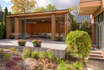 ID-10281 Загородный дом общей площадью 280 м2 расположен в живописном поселке Горки-2, недалеко от пересечения Рублево-Успенского и Красногорского шоссе. Дом обладает удобной транспортной доступностью: всего 14 километров до МКАД, менее пяти минут езды до платной трассы и около тридцати минут пути до центральных районов Москвы и Москва-Сити. Двухэтажный жилой дом с мансардой построен в 2019 году из пенобетона YTONG, отличается высоким качеством исполнения. Общая жилая площадь составляет 210 м2, свободное пространство мансарды добавляет дополнительные 70 квадратов. Планировка дома: 1 этаж: прихожая, гардеробная , бойлерная (оборудование BUDERUS), санузел и постирочная с современной техникой AEG, кабинет, который можно переоборудовать в спальню, просторная кухня-столовая-гостиная площадью около 58 м2 с выходом в сад и патио. Интерьер кухни выполнен немецким брендом премиум класса Nolte с использованием дорогой фурнитуры Blum. Стены покрыты столешницами и декоративными панелями из натурального камня кварцита, оснащены подсветкой фасадов. Техника представлена марками Asko, Neff и Aeg. 2 этаж: холл, лестница, ведущая на третий этаж, дополнительный санузел с ванной, две гостевые спальни по 17 м2 каждая, просторная мастер-спальня с гардеробной и душевой, а также выходом на балкон. Мансарда представляет собой свободную зону, которую новые владельцы смогут обустроить согласно своим предпочтениям: спортивный зал, домашняя библиотека, домашний кинозал или дополнительное жилое пространство. Дом оснащен системой подогрева полов первого этажа и электрических теплых полов второго этажа, обеспечивая комфорт круглый год. Перед домом оборудован уютный теплый гараж на одно машиноместо и удобный навес для трех-четырех автомобилей. Участок площадью 10 соток благоустроен: роскошный зеленый газон, декоративные туи, хвойные растения, пышные гортензии и прочие ландшафтные элементы создают атмосферу гармонии и комфорта. Отдельно выделяется зона отдыха: деревянная беседка в традиционном немецком стиле Фахверк площадью 35 м2. Внутри поселка есть вся необходимая инфраструктура для комфортной жизни: кафе, ресторан, детская площадка, салон красоты, футбольное поле, аптека, химчистка, центр бытовых услуг, банный комплекс, торгово-развлекательный центр.