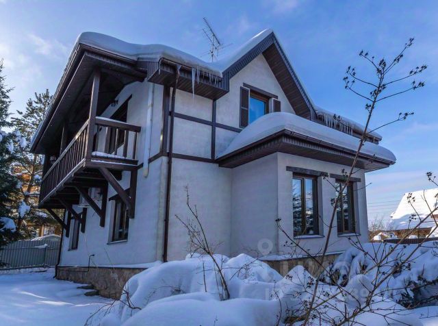 Дом, выполненный в классическом стиле, с балконами, просторной террасой, широкой лестницей ведущей на террасу, расположен на участке среди величественных туй, голубых елей, красивых лиственных деревьев и декоративных кустарников, живописных цветников.
