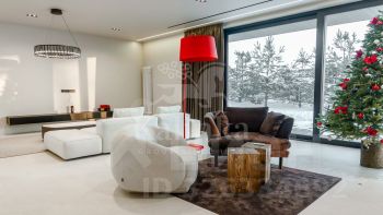 Усадьба вблизи посёлка Мозжинка (недалеко от Звенигорода), на участке общей площадью более 3 гектаров, состоит из трёх строений: основной дом (общая площадь 1763,70 кв. м) соединён подземным проходом со служебным флигелем, в котором расположен гараж на 6 машин. При въезде на территорию также имеется дом для охраны. Площадь флигеля — 515,3 кв. м, площадь дома охраны — 13,6 кв. м.