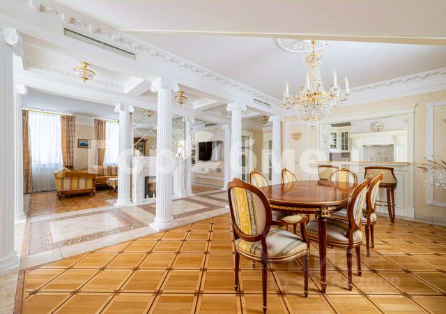 Прекрасная планировка: шесть изолированных комнат (три спальни, СПА-зона, бытовая, мастерская), шесть санузлов, гостиная с камином, кабинет, столовая с отдельной кухней, гардеробная и хозяйственные помещения. Лапомойка для питомцев.