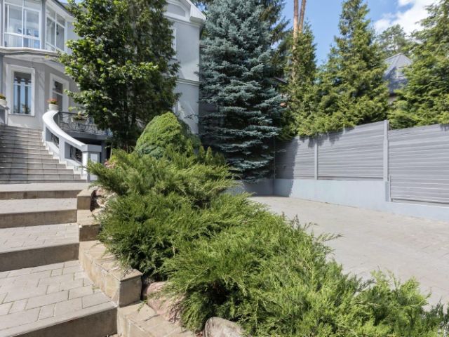 На участке - отдельно стоящий гараж на 6 машиномест, помещение охраны, хозяйственный блок и квартира для персонала. Простор позволяет разместить террасы, зоны барбекю, бассейн и прогулочные маршруты. Ландшафт выполнен с учётом приватности и видов на зелёный массив.
