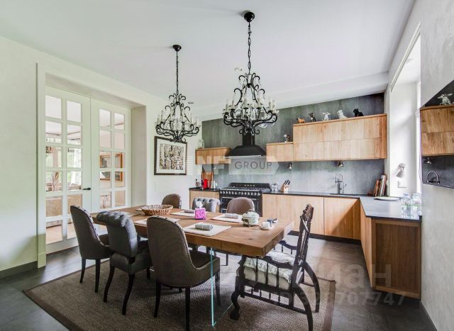 В доме продуманные планировки с просторными комнатами и санузлами при каждой спальне. В контуре дома оборудован бассейн, а также есть встроенный тёплый гараж для двух автомобилей. На территории участка, помимо основного дома, расположены: двухэтажный гостевой дом (1 этаж: холл, гостиная, кухня, санузел; 2 этаж: 4 спальни, 2 санузла), отапливаемая летняя кухня с зоной барбекю и летний гараж на два автомобиля. Все коммуникации центральные, дополнительно резервные скважина и септик.