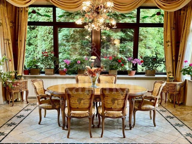 Лот: 9913104. Престижный дом в коттеджном поселке "Грязь" на Рублево-Успенском шоссе Представляем вашему вниманию уникальное предложение на рынке элитной недвижимости - просторный дом площадью 400 м² в коттеджном поселке "Грязь", расположенном всего в 25 км от МКАД по Рублево-Успенскому шоссе. Особенности дома: - Продуманная планировка: на первом этаже расположены гостинная с встроенной кухней (Германия, Италия) и камином, зал-столовая, кабинет-спальня, санузел, прачечная, гараж на два автомобиля, котельная и летняя веранда. На втором этаже - четыре спальни, два санузла, игровая комната и гардеробная. Мансарда оборудована кинотеатром с аппаратурой и креслами из США. - Высокие потолки: 3.20 м на первом этаже, 2.90 м на втором и 3.60 м на мансарде. - Качественная отделка. Участок: - Участок площадью 27 соток обнесен кирпичным забором. - Профессиональный ландшафтный дизайн: березы, ели, туи, плодовые деревья (яблони, груши), ягодные и декоративные кустарники, цветочные клумбы. - На участке расположены теплица, огород, прудик с рыбой, домик для инвентаря или охраны. - Установлена система полива и освещения. - Банный комплекс 164 кв.м с бассейном, двумя банями (финская на дровах и турецкая), кухней, столовой с камином и выходом на летнюю веранду с русской печью. Инфраструктура поселка: - В непосредственной близости от поселка расположены многочисленные пансионаты, Троицкая церковь, Москва-река, конно-спортивный комплекс, Дворец спорта, магазины по Рублевско-Успенскому шоссе. - В деревне есть свой продуктовый магазин. Технические характеристики: - Магистральный газ. - Скважина для водоснабжения. - Септик. Не упустите возможность стать обладателем этого прекрасного дома в экологически чистом районе с развитой инфраструктурой. Свяжитесь с нами для получения дополнительной информации или организации показа.