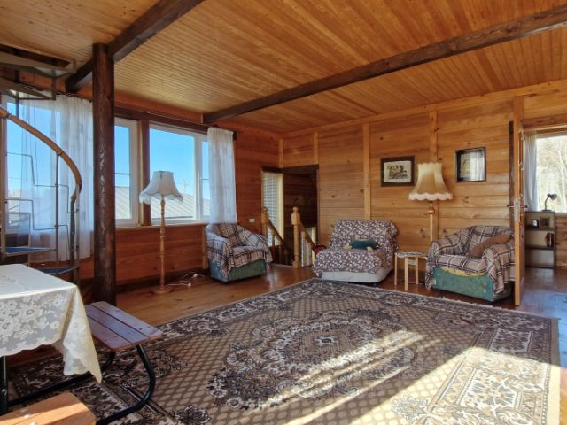 Продается эксклюзивный дом 363 м2 в органическом минимализме у леса и озера! Локация: Новорижское ш., Хуторок (СНТ), 45 км до МКАД (съезд 63А, 30 мин). До Москва-Сити — 60 км, 4550 мин: Новорижское Минское ш. платная М-1 (обход Одинцова) МКАД ТТК. Рядом озеро Бельское (памятник природы: пляж, рыбалка), Звенигород 5 мин, Павловская Слобода 10 мин, Рига Аутлет 10 мин. Инфраструктура: супермаркеты, аптеки, школы, частная школа "Полет навигатора". Дом: 240 м² (2 этажа), премиум-интерьер — дерево, мрамор, бежево-терракотовые тона, плавные формы, встроенная техника. Допы: Баня 60 м², гараж 60 м², террасы 200 м². Возможность докупить +35 соток. Умный дом: Освещение (сценарии), климат (отопление, тёплые полы), видео, ворота/доступ, шторы — всё через смартфон. Коммуникации: Газ магистральный, 45 кВт, скважина 107 м, септик. Статус: СНТ, 1 собственник, документы готовы.