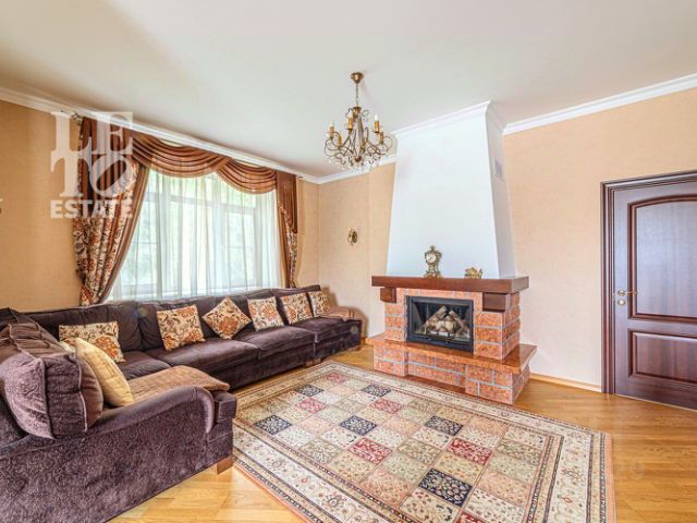 Кирпичный двухэтажный дом построен в классическом австрийском стиле, где основная цветовая гамма, это бежевый кирпич и темно коричневая черепица. Дом построен в 2012 году и его отличительная черта: высокие потолки до шести метров, второй свет в гостиной и закрытая стеклянная веранда с зоной барбекю. Готовый функционал включает в себя пять спален, гостиную с кухней, винную комнату, прачечную, кабинет и гардеробные.