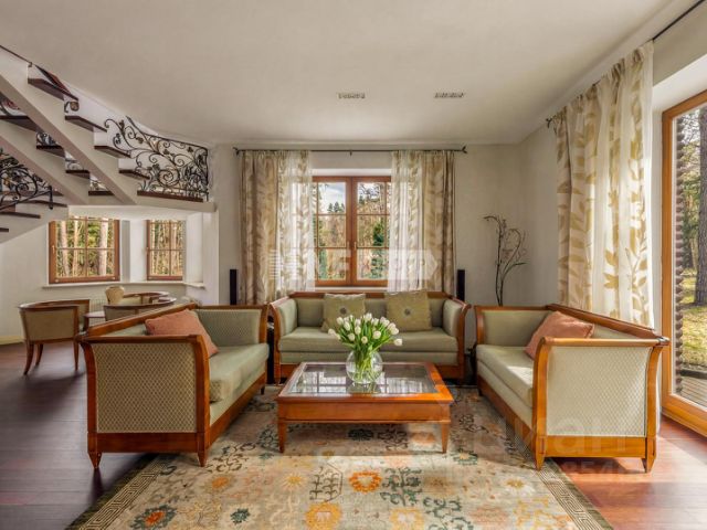 Лот: 9917710. ЭКСКЛЮЗИВ NF GROUP. Дом с мебелью 400 кв.м на участке 15 cот. Кол-во спален: 4. Кол-во с/у: 4. Поселок "Лесные Дали М". Рублево-Успенское шоссе, 28 км от МКАД. Без комиссии для покупателя. Уютный дом в поселке "Лесные Дали М" в 28 км от МКАД по Рублево-Успенскому шоссе. Отделка в 4 спальнях, кухне, столовой, гостиной с камином и выходом на террасу, зимнем саду, кабинете и блоке для персонала полностью завершена, дом готов к заселению. Мебель, бытовая техника и предметы декора предоставлены от ведущих мировых производителей. В отделке интерьера преобладают высококачественные натуральные материалы (дерево, камень). На просторном участке в 15 соток завершен ландшафтный дизайн с декоративными деревьями и кустарниками. На участке также расположена беседка-барбекю. К услугам жителей поселка Лесные Дали М вся необходимая инфраструктура пансионата теннисный корт, лечебно-оздоровительный центр, SPA, пляж на Москва-реке, ресторан, есть условия для занятия конным спортом. В поселке благоустроенная охраняемая территория. 1 этаж: гардеробная, гостевой с/у, кухня, столовая, гостиная с камином и выходом на террасу, зимний сад, котельная, постирочная, гараж на 2 м/м с кладовой и мойкой; 2 этаж: кабинет, спальня с ванной комнатой, 2 спальни, ванная комната, гостевой блок с 2-мя спальнями и с/у. На участке расположена беседка-барбекю. Поселок находится в 28 км от МКАД по Рублёво-Успенскому шоссе. В поселке - благоустроенная охраняемая территория. К услугам жителей поселка вся необходимая инфраструктура пансионата "Лесные дали" - теннисный корт, лечебно-оздоровительный центр, SPA, пляж на Москва-реке, ресторан, есть условия для занятия конным спортом.
