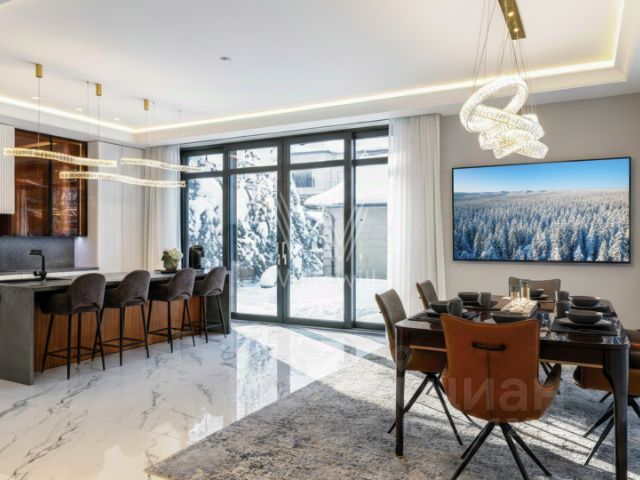 Интерьер выполнен в дорогом современном стиле с элементами минимализма и мягкой геометрии. Светлые тона, натуральные материалы, встроенное освещение и панорамные окна создают атмосферу уюта и визуальной лёгкости. Пространства наполнены воздухом, а мебель подобрана с акцентом на комфорт и функциональность - от мягких диванов до лаконичных систем хранения.