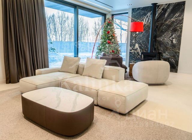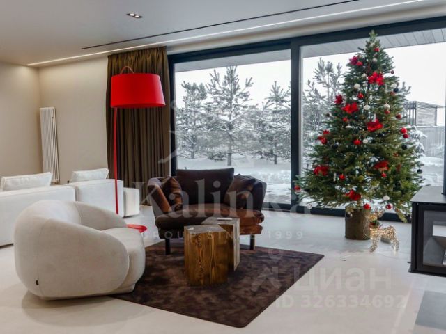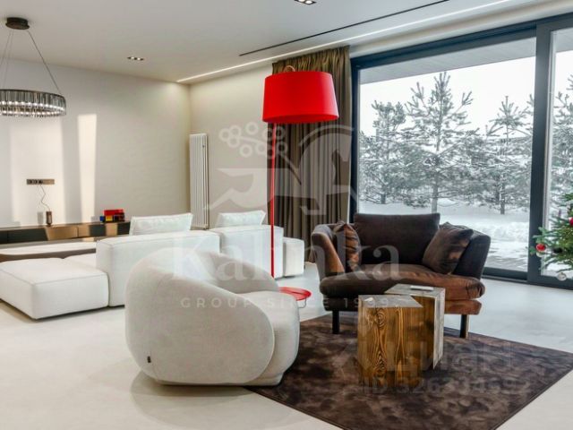 Усадьба вблизи посёлка Мозжинка (недалеко от Звенигорода), на участке общей площадью более 3 гектаров, состоит из трёх строений: основной дом (общая площадь 1763,70 кв. м) соединён подземным проходом со служебным флигелем, в котором расположен гараж на 6 машин. При въезде на территорию также имеется дом для охраны. Площадь флигеля — 515,3 кв. м, площадь дома охраны — 13,6 кв. м.