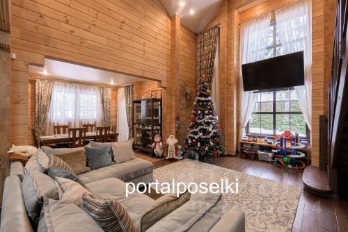 В большой гостиной барная стойка для завтраков, обеденный стол на 8 персон, современный дизайнерский диван от Boco room на котором одинаково удобно общаться с друзьями, смотреть телевизор или любоваться игрой света парового камина. Вся мебель дома в натуральном шпоне ценных пород дерева, практичные столешницы из кварцевого агломерата и крупноформатного керамогранита заметно упрощают жизнь хозяевам. Как оборудование и современные инженерные системы проверенных брендов. Приточная вентиляция с фильтром, канальным кондиционирование и увлажнением не помешала установке в каждой комнате фрамуг с дистанционным открыванием (что позволяет наслаждаться пением птиц и в комнате).