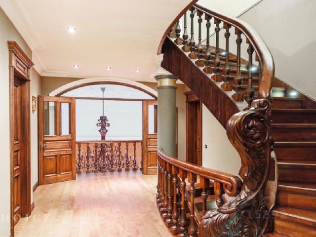 В отделке интерьеров использовались качественные материалы: дерево, керамогранит (Испания), мрамор. В доме установлены теплые полы. В планировке предусмотрены СПА-зона с бассейном (8м, с противотоком), сауна, душевые), кабинет, просторная гостиная с камином, кухня столовая с застекленной террасой, 4 спальни, 5 с/у, домашний кинотеатр с зоной отдыха.