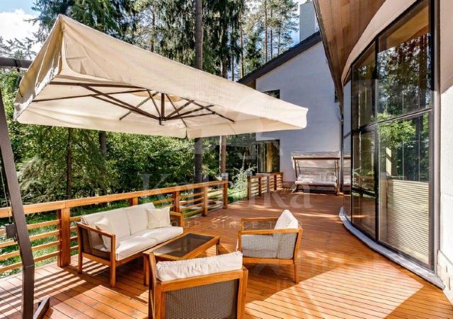 Дом расположен на великолепном ландшафтном участке с вековыми соснами. Участок уникальный, у него всего 2 соседа. Правильная квадратная форма участка. Проведены ландшафтные работы, высажены кустарники и декоративные деревья, вымощены дорожки, установлено освещение.
