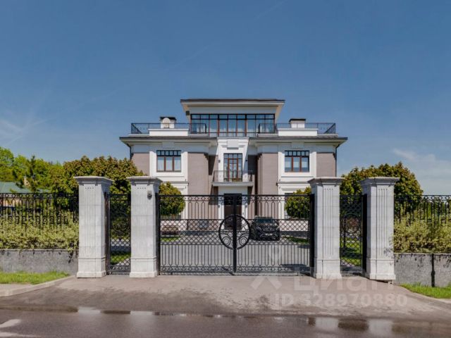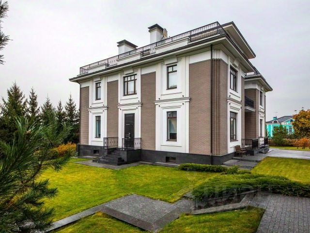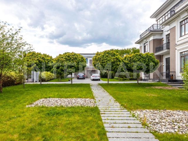 В доме продуманные планировки с просторными комнатами и санузлами при каждой спальне. В контуре дома оборудован бассейн, а также есть встроенный тёплый гараж для двух автомобилей. На территории участка, помимо основного дома, расположены: двухэтажный гостевой дом (1 этаж: холл, гостиная, кухня, санузел; 2 этаж: 4 спальни, 2 санузла), отапливаемая летняя кухня с зоной барбекю и летний гараж на два автомобиля. Все коммуникации центральные, дополнительно резервные скважина и септик.