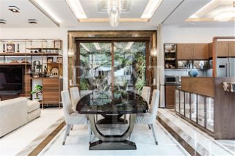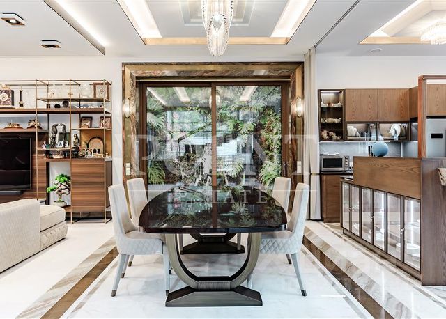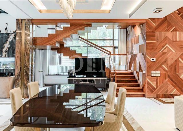 В доме: 5 спален, 2 кухни с профессиональной мебелью, кабинет, гараж на 4 м/м, блок персонала, спа-зона, профессиональная винная комната и роскошная терраса.