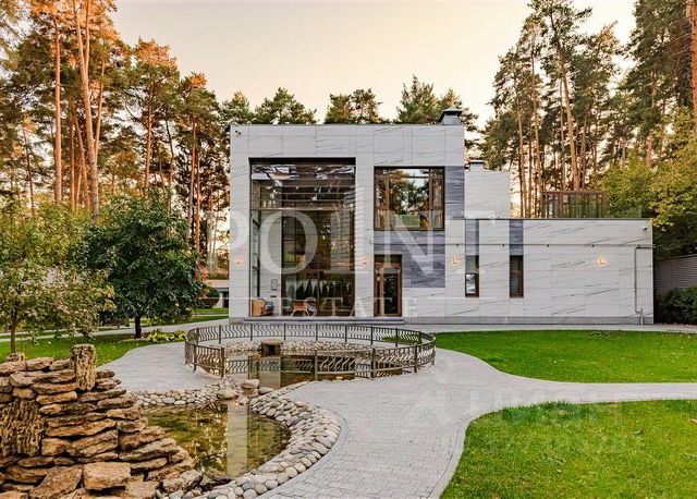 Дом 976 кв.м приватно расположен на ухоженном и утопающем в зелени участке 47 соток, примыкающем к парковой территории элитного коттеджного поселка Монтевиль в 23 км от МКАД по Новорижскому шоссе.