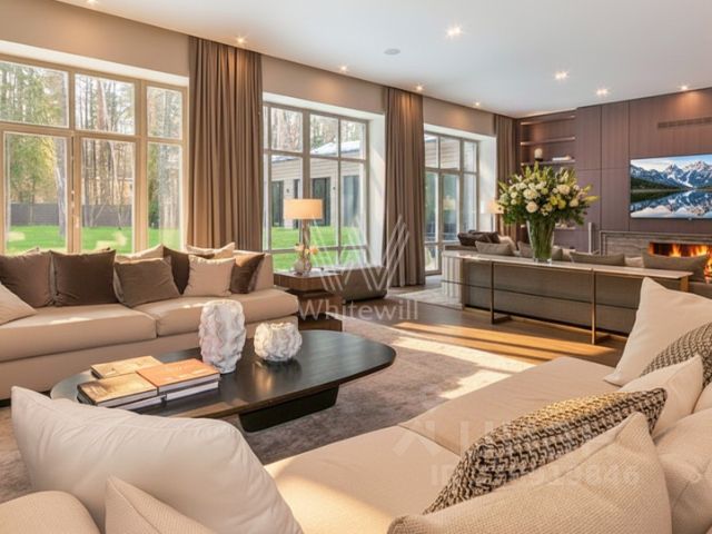 ЛОТ 80132 ЕС Продажа загородной резиденции площадью 2222 кв. м. Новорижское шоссе, 9 км от МКАД. Коттеджный поселок Никольская Слобода. Дом построен в стиле Ллойда Райта. Выполнена высококачественная дизайнерская отделка под ключ в стиле Райта с элементами Ар-Деко. Комнаты отличаются простором, высотой потолков, открытыми террасами и балконами, дом наполнен большим количеством света и воздуха. В отделке интерьеров используются качественные и натуральные материалы премиального класса, только итальянский мрамор, массив дерева, оникс, мозаика ручной работы, латунь и дорогие чугунные батареи. Фасад дома выполнен из клинкера, крыша — стропильная система из металлоконструкции. Укомплектован всей необходимой премиальной техникой. Сантехника в доме представлена европейскими производителями, освещение — американскими. Необыкновенный набор помещений и планировка изумляют. Установлена система вентиляции и кондиционирования. Прекрасное расположение резиденции на зеленом, уютном участке 50 соток с готовым ландшафтным дизайном. На участке высажены крупномеры и хвойные деревья, а также расположен гараж на 4 места с квартирой для персонала.