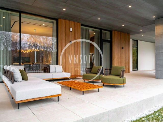 ID-10261 Современный коттедж в поселке Николино. Новый загородный дом площадью 760 м² расположен на участке 15 соток рядом с живописным лесом. Панорамное остекление наполняет внутренние пространства естественным светом и ощущением единства с природой. Дизайнерская отделка интерьеров оформлена в спокойной цветовой гамме. Натуральные материалы, камень, дерево и металл в балансе создают атмосферу спокойствия и статусности. Коттедж полностью готов к проживанию — каждая деталь, от тщательно подобранного декора и изящных люстр до стильной мебели и встроенной бытовой техники, продумана для комфортной жизни. Приятный микроклимат в любое время года обеспечивает система кондиционирования. Планировка продумана без компромиссов — просторная гостиная с камином объединена с кухней-столовой, оборудованной удобным островом, что создаёт идеальное место для вдохновения и приёма гостей. Для отдыха предусмотрены четыре уютные спальни с вместительными гардеробными. Дополнительными преимуществами стали квартира для персонала с отдельным входом и встроенный двухместный гараж. Год постройки-2025. На участке вдохните запах свежескошенной травы, прогуливаясь по мощёным дорожкам в тени высоких деревьев, и любуйтесь декоративными кустарниками. Вечерние посиделки на террасе будут особенно романтичными благодаря мягкому уличному освещению. Это не просто дом — это пространство, где архитектура, свет и природа живут в едином ритме. Дом, в котором хочется оставаться.
