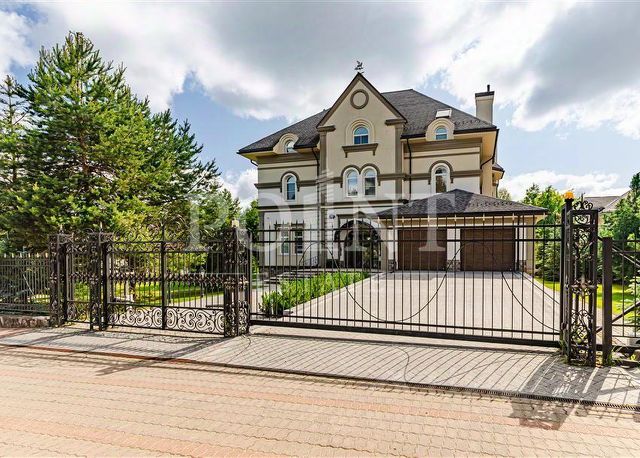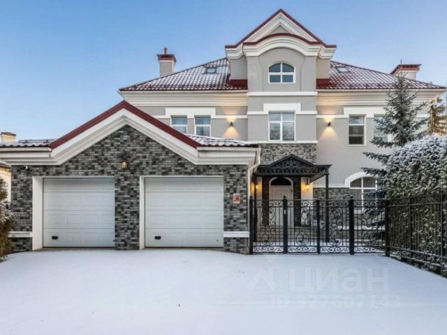 ID: 7754. Элегантный, уютный дом с 6 спальнями в элитном поселке Ричмонд на Рублево-Успенском шоссе. Земельный участок 22 сотки. Площадь основного дома 690 м2. Высокие потолки, большие окна и обилие света создают ощущение легкости пространства. Конструктивные особенности дома и отделочные материалы высокого уровня делают дом очень теплым. Подвал оснащен системой хранения. Отдельно построена баня 160 м2, есть гараж на 2 м/м с квартирой для персонала, уличная веранда-барбекю. Планировочное решение основного дома: 1 этаж: прихожая, гардеробная сезонная, кухня-столовая, гостиная, каминная, домашний кинотеатр, с/у гостевой, холл, выход в сад, комната свободного назначения, бойлерная, постирочная; 1/2 этаж: 100 кв.м веранда отапливаемая, с/у, спальня. 2 этаж: мастер-спальня со своим с/у и гардеробной, детский блок с двумя спальнями, гардеробной и санузлом; спальня, кабинет с большим балконом; 3 этаж: спальня, будуар, гардеробная, с/у, чемоданная. Цоколь: подсобные помещения.