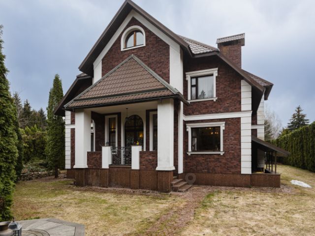 Конструктив: Фундамент монолитная плита, стены -керамоблок, фасад декоративная штукатурка с отделкой лиственницей. Толщина внешних стен 58 см. Кровля мягкая. Лестница и перекрытия монолитные. Окна - тройные стеклопакеты.
