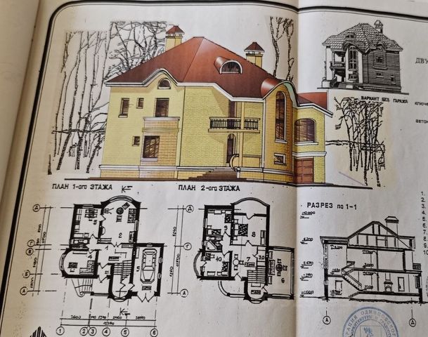 Первый этаж: холл, гардеробная, просторная кухня-столовая-гостиная с камином с выходом на террасу, кабинет, гостевая спальня, с/у, гараж, котельная, подс. помещения.