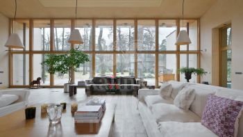 Оконные системы SCHUCCO, двери RIMADESIO, стеклянный лифт - всё подчёркивает архитектурную точность и статус.