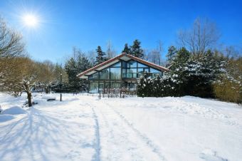 Приватная зона второго этажа организована вокруг двух лестничных холлов и включает две мастер-спальни. Один из мастер-блоков - двухуровневый, с отдельной лестницей, площадью 158 м, с кабинетом, ТВ-зоной, гардеробной и ванной с видом на лес. Второй - полноценный сьют с собственной гостиной и рабочей зоной (83 м).