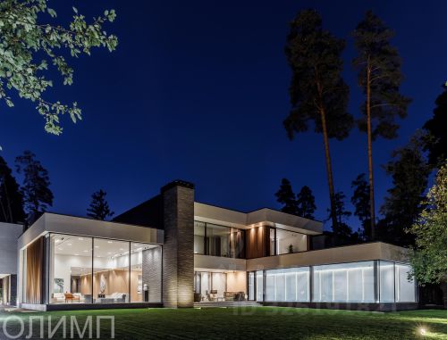 МосОблДачи. Новая загородная резиденция площадью 2634 м² расположена на участке 73 сотки. Монументальный светло-бежевый фасад выполнен в стиле Фрэнка Ллойда Райта и декорирован изящной резьбой по камню. Дом без отделки позволяет будущим владельцам выбрать стиль интерьера, финишные покрытия, мебель и технику на свой вкус. Внутри спланировали 6 спален с гардеробными, кабинет, столовую, винную комнату, кинотеатр, гараж и спа-зону с бассейном, сауной, хаммамом, снежной комнатой и купелью.