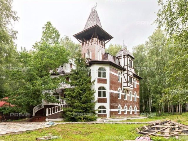 На лесном участке 55 соток с ландшафтным обустройством, на котором растут вековые сосны, расположена загородная усадьба площадью 1500 метров.