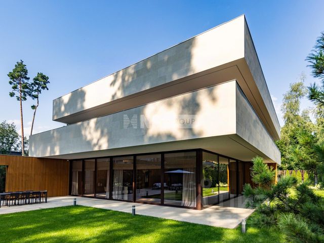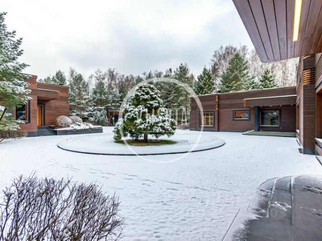 На участке - отдельно стоящий гараж на 6 машиномест, помещение охраны, хозяйственный блок и квартира для персонала. Простор позволяет разместить террасы, зоны барбекю, бассейн и прогулочные маршруты. Ландшафт выполнен с учётом приватности и видов на зелёный массив.