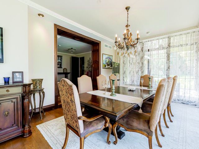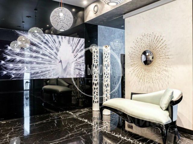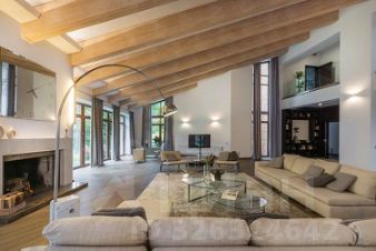 Дополнительно - шесть спален, каждая с гардеробной и санузлом, библиотека, семейная гостиная. Мебель в интерьере - Rugiano, Minotti, Frato, Porada, Flexform, Poltrona Frau, Ulivi, Fiam. Свет - Flos, Foscarini, Tom Dixon. В отделке - мрамор, оникс, натуральное дерево, стекло и металл.