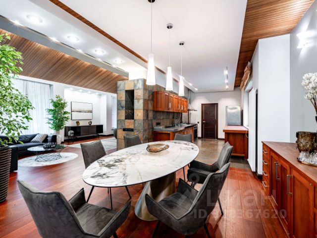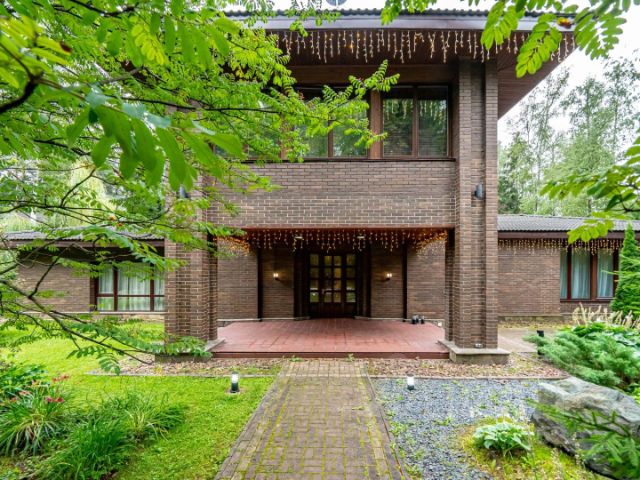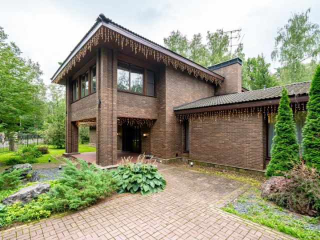 Дом в темно-коричневых тонах от стен до кровли представляет из себя 2 соединенных объема прямоугольных форм. Идеальное размещение на участке, дает возможность, не только удобно парковать автомобили под отдельно стоящий навес ( заботясь об экологии дома), но и наслаждаться прекрасными видами из панорамных окон любой комнаты или балкона. Просторный холл первого этажа объединяет весь дом и одновременно направляет движение по нему, здесь расположена удобная двух маршевая лестница на второй этаж . Одноэтажная гостиная столовая имеет двускатную форму потолка, подшитую натуральным деревом, сразу определяя загородный формат. Зона кухни, столовой, гостиной с выходом на веранду объединены в единое пространство и имеют круговое движение. В гостиной центральное место занимает дровяной камин, интегрированный в стену, облицованную натуральным сланцем в природных оттенках от желтого до терракотового. Уединиться и поработать можно в кабинете, рядом с которым находится вторая гостиная, сочетающая в себе библиотеку и ТВ-зону, с выходом на большую веранду. Зона СПА в марокканском духе приглашает отдохнуть на лежаках у бассейна и расслабиться в хаммаме, предусмотрен выход на улицу. Второй этаж полностью отведен под спальни. На участке выполнено уличное освещение, оформлены декоративные миксбордеры, выложена тропиночная сеть, под окнами кухни вазоны для выращивания зелени к столу, в тенистой части располагается площадка для медитации, в дальней углу участка под кронами деревьев находится уединенная беседка.