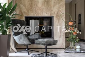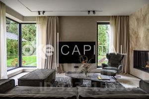Интерьер выполнен в дорогом современном стиле с элементами минимализма и мягкой геометрии. Светлые тона, натуральные материалы, встроенное освещение и панорамные окна создают атмосферу уюта и визуальной лёгкости. Пространства наполнены воздухом, а мебель подобрана с акцентом на комфорт и функциональность - от мягких диванов до лаконичных систем хранения.