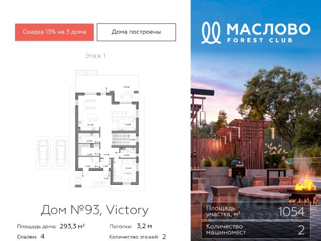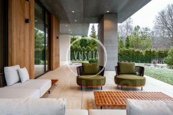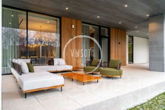 На участке - отдельно стоящий гараж на 6 машиномест, помещение охраны, хозяйственный блок и квартира для персонала. Простор позволяет разместить террасы, зоны барбекю, бассейн и прогулочные маршруты. Ландшафт выполнен с учётом приватности и видов на зелёный массив.