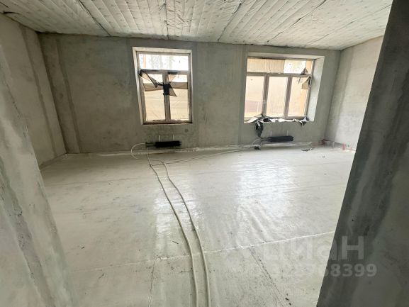 Квартира продается без отделки в бетоне. Расположена на 2 этаже 14-этажного дома, высота потолков — 2,75 метра. Планировка — распашонка: окна выходят на запад и на восток. Из окон открывается вид как на улицу, так и во двор.