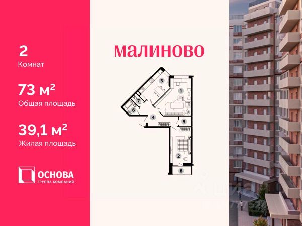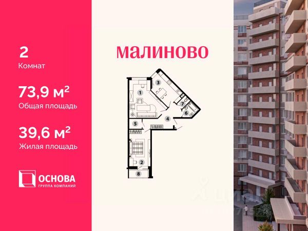 Продается 1-комн. кв-ра площадью 40,8 кв.м на 2 этаже 12 этажного монолитно-кирпичного дома в ЖК "Малиново". АО ГК ОСНОВА является крупным застройщиком Москвы и Московской области. В девелоперском портфеле Компании на разных стадиях реализации сегодня находятся 20 жилых проектов в столичном регионе площадью порядка 2 млн м2, а также один реализованный проект в Чехии. Проект ЖК "Малиново" один из 20 проектов АО ГК ОСНОВА, он представляет собой 12-ти этажный кирпично-монолитный жилой комплекс, который находится в одном из наиболее экологически чистых районов Подмосковья - Звенигороде. Комплекс расположен в микрорайоне Восточный, в 5 минутах до ЦКАД и в 42 км от МКАД. Сердце города находится буквально в пятнадцати минутах ходьбы от месторасположения ЖК. ЖК "Малиново" располагается в районе с развитой инфраструктурой и хорошей транспортной доступностью. Поблизости находятся детские сады, школы, медицинские учреждения, торговые комплексы, магазины, культурный центр, спорткомплекс, бассейн и памятник природы - Мозжинский овраг. Недалеко от города - горнолыжные трассы, спуски для снегокатов. В 7 минутах ходьбы от ЖК строится новая школа, ввод в эксплуатацию 2024 год. Приобретая квартиру в ЖК "Малиново" вы обретаете комфортный стиль жизни в центральной части города. Становитесь счастливым обладателем квартиры с видом на Москву-реку, а также с лоджией с панорамными окнами. Звоните и получите подробную консультацию, специалисты отдела продаж помогут выбрать наиболее подходящий вариант! Дистанционное оформление ипотеки, рассрочка и другие варианты покупки для вашего удобства.* Купить квартиру комфорт класса от застройщика в Звенигороде.