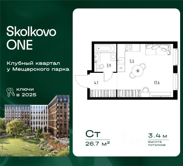 Прямая продажа от застройщика! Жилой комплекс в двух шагах от Мещерского парка Квартира в корпусе 6 | 26,7 м² | 9 этаж из 9 | Дом сдан Откройте для себя новый уровень жизни в ЖК "Skolkovo ONE" — единственном жилом комплексе с собственным приватным выходом в Мещерский парк. Преимущества ЖК "Skolkovo ONE": Эксклюзивная локация: Живите в гармонии с природой, не отказываясь от ритма мегаполиса: Мещерский парк (465 га) в двух шагах от дома — ваши персональные "легкие" в черте города. 5 минут до Инновационного центра "Сколково" — соседство с технологиями будущего. 20 минут до Москва-Сити — идеальный баланс уединения и доступности. 10 минут до метро "Озерная", "Говорово" Бизнес-класс в английском стиле: Клубный формат в духе английской архитектуры с панорамным остеклением и французскими балконами. Комфортная этажность, 9 этажей. Фасады из натуральных материалов. Smart-планировки: мастер-спальни, два санузла, гардеробные. Панорамные виды на лес и парк из окон. Квартиры без отделки — реализуйте собственный стиль и воплотите любые дизайнерские решения. Комфорт и сервис: Консьерж-сервис, дизайнерские лобби с зонами для работы и отдыха. Дендропарк во дворе, детская инфраструктура и продуманные общественные пространства. ЖК "Skolkovo ONE" — клубный жилой комплекс для тех, кто ценит баланс между динамикой мегаполиса и уединением природы. Узнайте подробности и забронируйте свою квартиру у наших менеджеров!