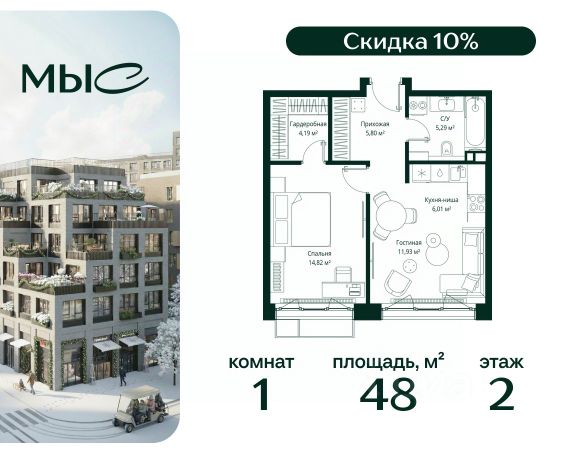 Прямая продажа от застройщика. Продаётся 1-комнатная квартира общей площадью 44.25 м² без отделки в премиальном жилом комплексе "МЫС" на 2-м этаже 12 этажного дома. Квартира расположена в корпусе "Волга". Проект МЫС — это, прежде всего, идеальное место для семей. В рамках проекта построят государственную школу, два детских сада и дворец спорта площадью 20 000 м2 с термальным комплексом, выплывным бассейном, фитнес-залом, теннисными, сквош и падел кортами и секциями для детей. На территории площадью, сравнимой с тремя парками Зарядье, появятся кафе и рестораны, пруд с набережной, спортивные и детские площадки, скейт-парк, лыжные и веломаршруты. Расположение: - 2 минуты до скоростной трассы М1 и Минского шоссе; - 10 минут до МКАД; - 15 минут до МЦД Лесной Городок - 20 минут до делового центра "Москва-Сити"; - 28 минут до аэропорта "Внуково". Благоустройство: - велосипедные и лыжные маршруты; - собственная набережная и парк; - лаунж-зоны в окружении природы; - беседки у очага; - дворец спорта площадью 20 000 м²; - термальный комплекс с тремя бассейнами; - 4 теннисных и падел-корта; - 6 сквош-кортов; - многофункциональный спортзал; - скейт-парк; - просторная площадь для прогулок с фонтаном; - детский клуб с творческими секциями; - гастро-доминанта; - кафе у пруда, рестораны, ритейл. Окружение - соседство с лесным фондом; - школа на 1250 мест и 2 детских сада на 350 и 255 мест; - Дубковский и Подушкинский леса, парк "Рассказовка", Мещерский парк. Действуют специальные условия при 100% оплате, подробности уточняйте у менеджера в офисе продаж.