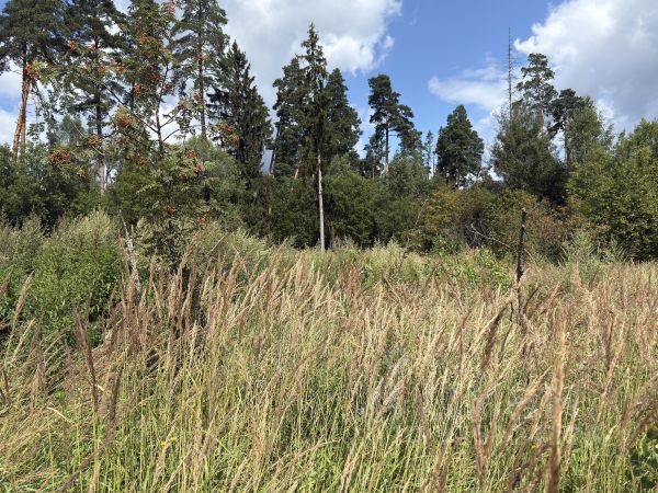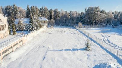 Организован удобный и презентабельный подъезд. Участок угловой, с двух сторон примыкает к поселковой границе. Расположен в дальней и самой тихой части поселка, максимально приватный и уединенный.