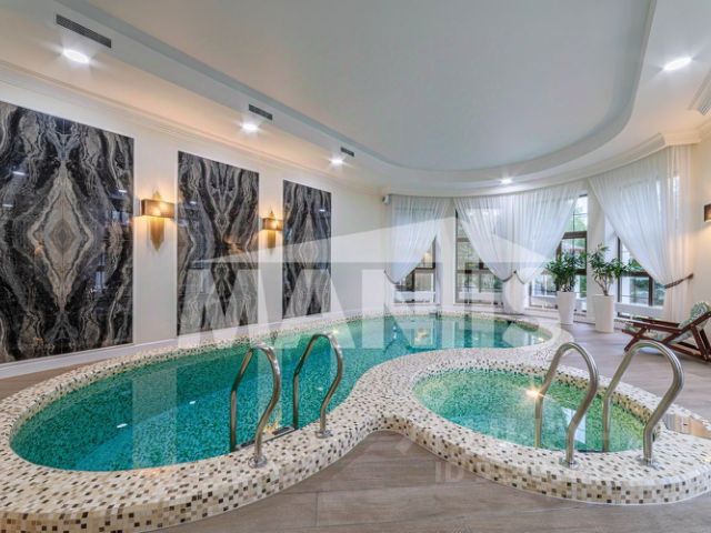 Поречье Дачное. Эксклюзив компании Whitewill. Загородный особняк площадью 1000 м² расположен на живописном лесном участке 125 соток. Изысканный фасад с двумя флигелями и конической крышей выдержан в английском стиле, облицован красным кирпичом и натуральным камнем, а также украшен колоннами, рустовкой и балюстрадой. Будущие владельцы смогут выбрать финишные покрытия, мебель и технику на свой вкус — внутри выполнена отделка whitebox, дополненная элегантной лепниной. Пространство наполнено светом и солнечными лучами благодаря большим окнам, потолкам высотой 4,2 метра и второму свету. Внутри можно разместить просторную гостиную с камином, кухню, столовую, комнату для завтраков, кабинет, 9 уютных спален, включая мастер-спальню с гардеробной и будуарной, библиотеку и зимний сад. На цокольном этаже спланировали бильярдную, сауну, винную комнату и спортзал. В SPA-зоне полностью готов бассейн, где будет приятно расслабиться после рабочего дня. Кроме того, на территории возведены баня в стиле шале с большой террасой, дом для персонала и гараж. Тенистый участок с вековыми соснами и раскидистыми лиственными деревьями создает ощущение единения с природой. Аккуратно подстриженные газоны, дорожки из натурального сланца и зоны отдыха со скамейками завершают образ идеальной резиденции. Поэтажное описание Цоколь: бильярдная, сауна, винная комната, спортзал, постирочная, кладовая, котельная. 1-й уровень: прихожая, гостиная, кухня, столовая, комната для завтраков, кабинет, спальня с санузлом, гардеробная, бассейн, зимний сад, санузел. 2-й уровень: спальня с гардеробной и санузлом, мастер-спальня с гардеробной, будуарной комнатой и санузлом, спальня с санузлом, библиотека. Мансардна: гостиная, 5 спален, 3 санузла. Главное о поселке. "Поречье Дачное" — современный коттеджный посёлок с приватной атмосферой и ухоженными улицами. Территория закрыта и охраняется, на въезде работает КПП. Для жителей обустроены прогулочные зоны, спортивные и детские площадки, а в центральной части посёлка расположен живописный пруд с местами для отдыха и барбекю. В летние вечера здесь устраивают встречи у воды и кинопоказы под открытым небом. Действует управляющая компания, обеспечивающая чистоту, ландшафтный уход и круглогодичное обслуживание домов. Посёлок гармонично сочетает природу Звенигородского заповедного края с современным уровнем комфорта и остаётся одним из самых уютных мест для жизни за городом. Главное о локации. Посёлок "Поречье Дачное" расположен в живописной части Одинцовского округа, рядом со Звенигородом — в 35 км от МКАД по Новорижскому или Рублёво-Успенскому шоссе. Это место с богатой историей, где сохранился уникальный ландшафт с холмами, сосновыми лесами и чистым воздухом. В нескольких минутах находится Москва-река: летом здесь устраивают купания, рыбалку и пикники на песчаных берегах. В Звенигороде расположены уютные рестораны "Хорошо здесь" и "Усадьба Марфино", продуктовые супермаркеты, фермерские лавки и один из лучших в Подмосковье фитнес-комплексов — "Лесной". Рядом находятся музей-заповедник Саввино-Сторожевского монастыря, конноспортивный клуб и живописные эко-маршруты для прогулок и велосипедных поездок. Комментарий эксперта. Меня зовут Дмитрий Шилин — брокер компании Whitewill. Я отвечаю за продажу этого лота. Свяжитесь со мной, чтобы получить ра