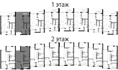 2-й этаж: Библиотека, гардеробная, спальня, санузел, лестничный холл, гардеробная, коридор, санузел, хозяйская спальня, коридор, служебная лестница, спальня, гардеробная, санузел, гардеробная, санузел, спальня, спальня, санузел, гардеробная, санузел, спальня