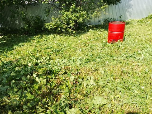 Растут плодовые деревья и кустарники (яблони/крыжовник/жимолость и тд).