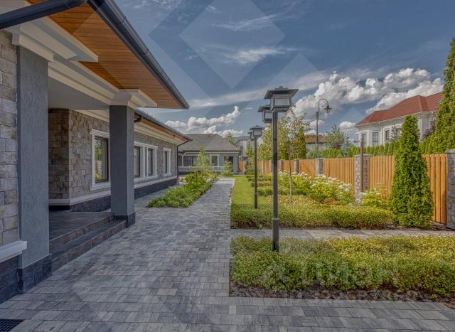 Благоустройство участка: на участке выполнен ландшафтный дизайн-проект, проведено освещение, высажены плодовые деревья (яблоня и груша), растут ели, сосны, туи. По периметру участка проходит дренажная система с выходом в поселковую ливневую канализацию.