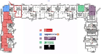 1065636 . Предлагаем помещение свободного назначения формата Street Retail, площадью 146.2 кв. м, расположенное на первом этаже 17-этажного жилого дома в ЖК "Восточный".