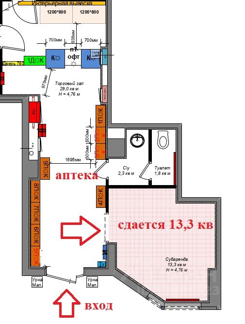 Сдается помещение площадью 13,3 кв.м. при входе в аптеку Здравсити (смотрите план и фото). В арендную плату все включено. Рассмотрим все виды деятельности, кроме общепита и табака. Звонки принимаются в рабочие дни с пн-пт с 9.15 до 18.00.