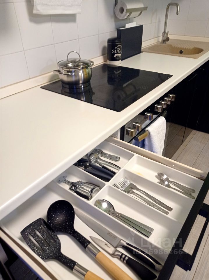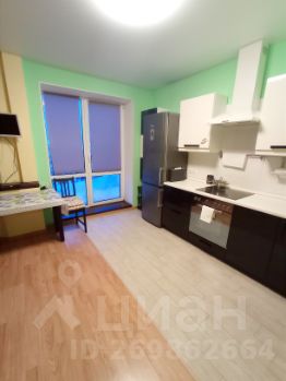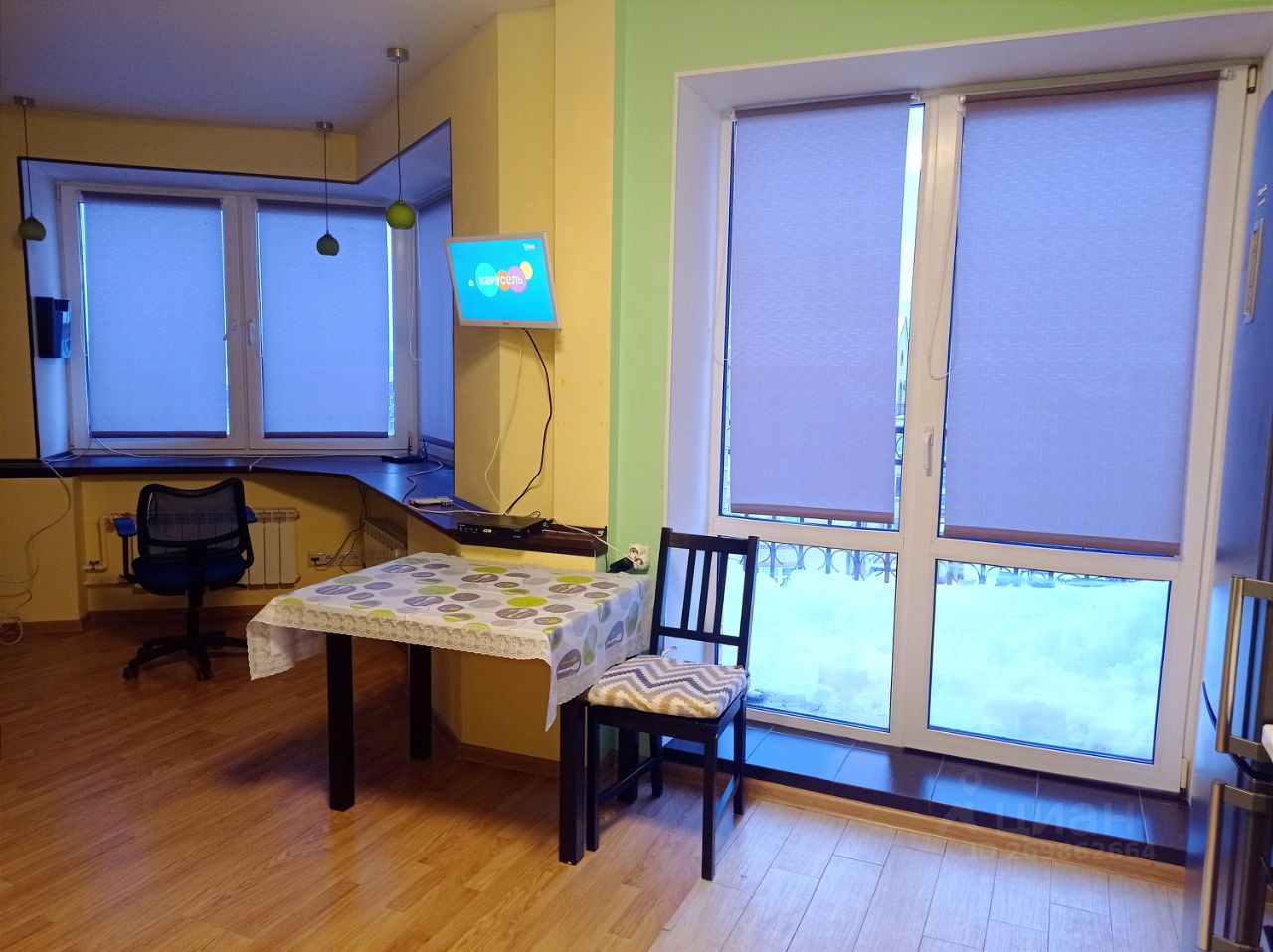 Квартира-студия 40м находится на 6 этаже многоквартирного дома, окна на рассвет, открытый балкон. Квартира оборудована необходимой техникой (стиральная машина, электрическая сушка белья, СВЧ, духовка, вытяжка, электрическая плита, холодильник, посудомоечная машина, небольшой телевизор на кронштейне с возможностью его поворота как в сторону кухни, так и в сторону кровати, кондиционер)