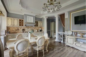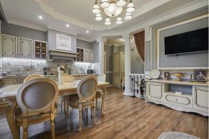 Интерьер в классическом стиле подарит вам ощущение роскоши и комфорта. Квартира оборудована всей необходимой мебелью и техникой. Есть все для комфортного проживания.