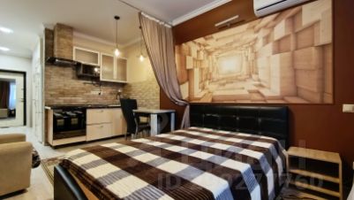 Квартира укомплектована мебелью и бытовой техникой. Полноценная двуспальная кровать, шкаф, кухонный гарнитур, микроволновая печь, варочная панель (стеклокерамика), духовой шкаф, холодильник, телевизор, кондиционер. В ванной комнате - душевая кабина, стиральная машина. Оборудована небольшая гардеробная. Лоджия остеклена. Есть все необходимое для комфортного проживания.