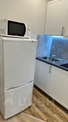 Удобная широкая кровать. В студии есть всё необходимое для проживания: микроволновая печь, холодильник, плита, ТВ, стиральная машинка.